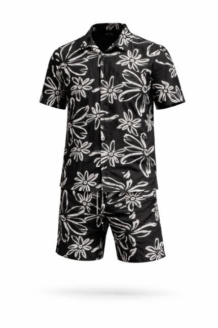 Black Floral Co-Ord Set for Men Relaxed Tropical Shirt & Shorts Outfit