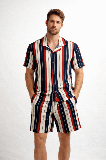 Men’s Striped Co-Ord Set Shirt + Shorts Casual Summer Outfit Comfortable Streetwear Set