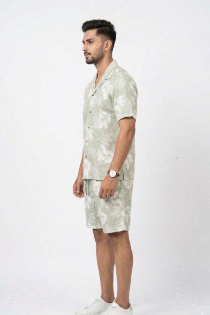 Men’s Floral Print Co-Ord Set – Half Sleeve Button Down Shirt & Shorts Casual Summer Beach Outfit | Lightweight Stylish Matching Set for Men