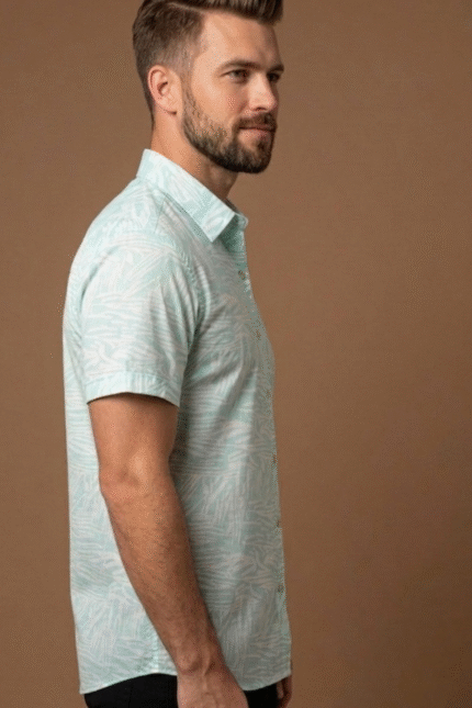 Men’s Tropical Print Casual Shirt – Short Sleeve Button Down Lightweight Summer Beach Wear with Palm Tree Design