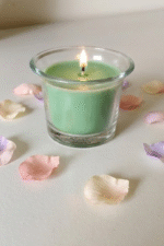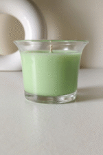 green wax scented candle in a clear glass jar. Designed to bring warmth, fragrance, and style to any space, this candle is perfect for bedrooms, living rooms, bathrooms, or meditation areas. The soft glow of the flame combined with the soothing aroma helps reduce stress and creates a peaceful ambiance after a long day