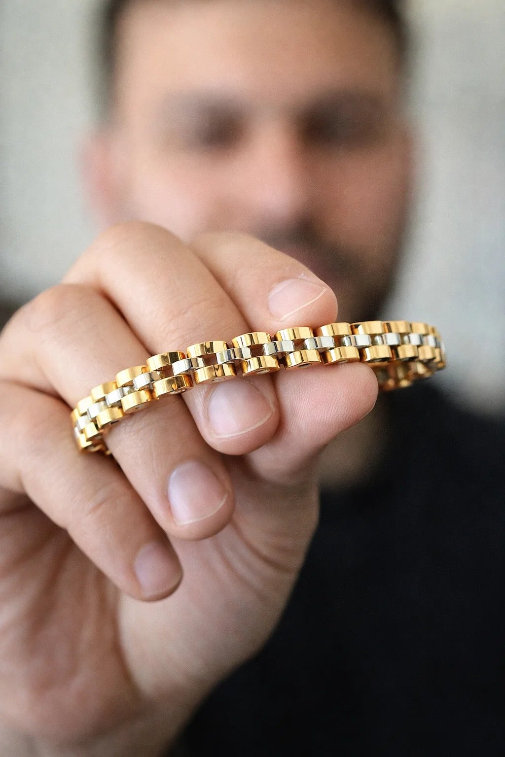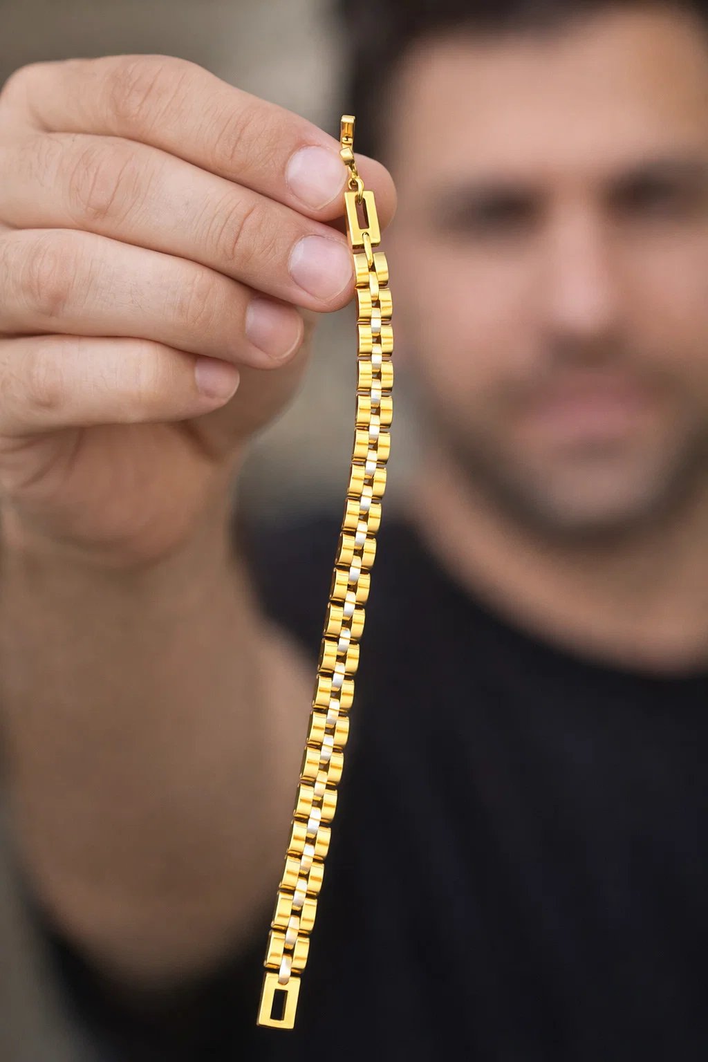 Upgrade your everyday style with this premium gold-tone link bracelet for men. Crafted with durable stainless steel and a sleek dual-tone finish, it offers both strength and sophistication. Perfect for daily wear, parties, or gifting, this bracelet adds a bold yet classy touch to any outfit