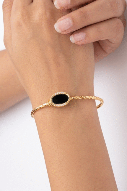 Golden Bracelet with Black Stone & Diamonds Stylish Adjustable Bracelet for Women | Daily Wear & Party Jewelry