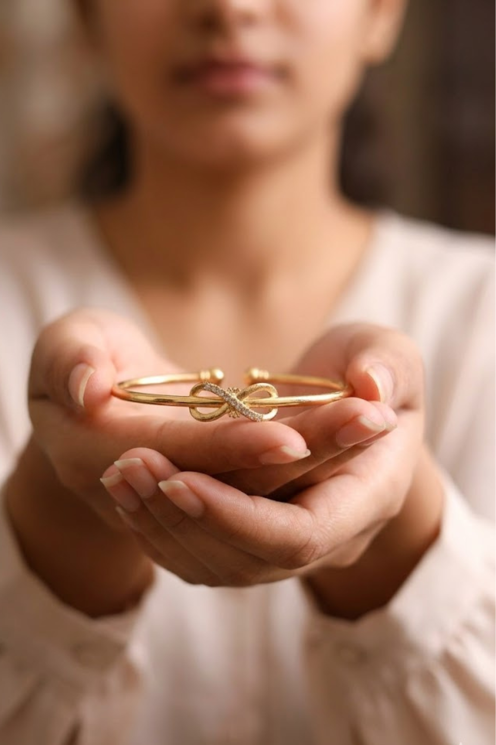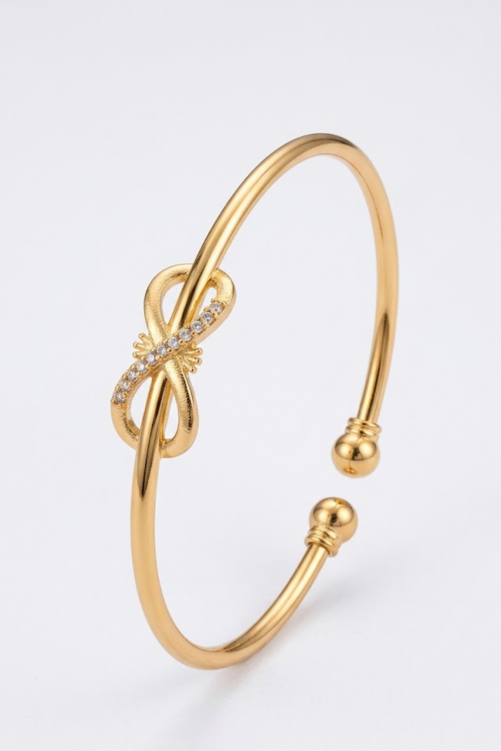 Golden Bow Knot Bracelet for Women Stylish Minimal Open Cuff Bangle with Crystal Accen