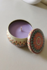elegance into your home with this beautifully designed scented candle in a decorative tin jar. Infused with a relaxing lavender fragrance, it helps create a peaceful ambiance perfect for unwinding after a long day. The premium wax ensures a clean and even burn, while the compact tin with lid makes it ideal for both home décor and travel use