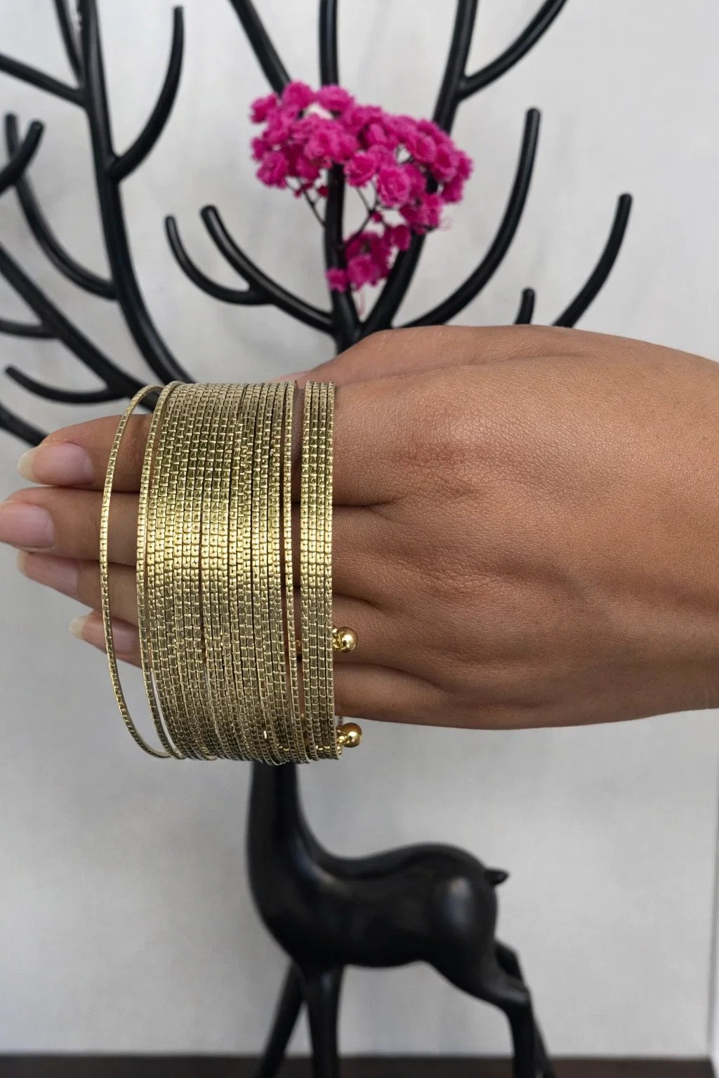 Perfect for both traditional and modern outfits, this versatile stack can be worn together for a bold statement or individually for a minimal, chic vibe. The smooth edges ensure a comfortable fit, making it ideal for daily wear, festive occasions, weddings, and parties