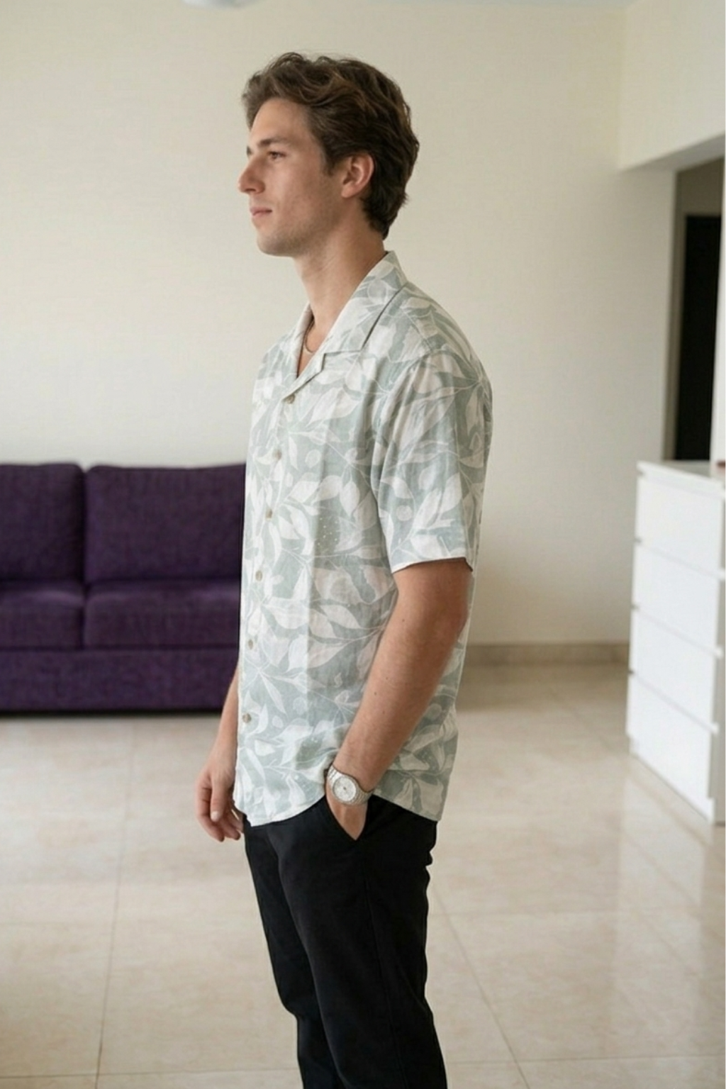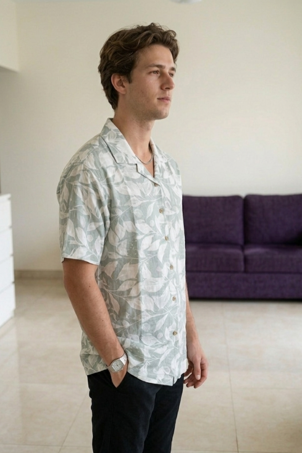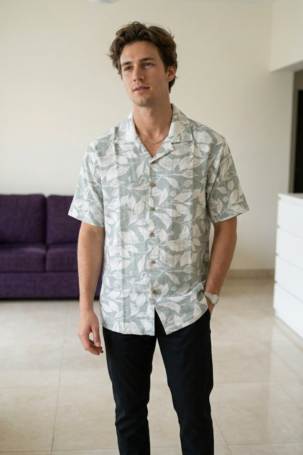 Men’s Tropical Leaf Printed Shirt – Stylish Casual Summer Wear Half Sleeve Button-Down Beach Shirt for Men | Lightweight & Breathable