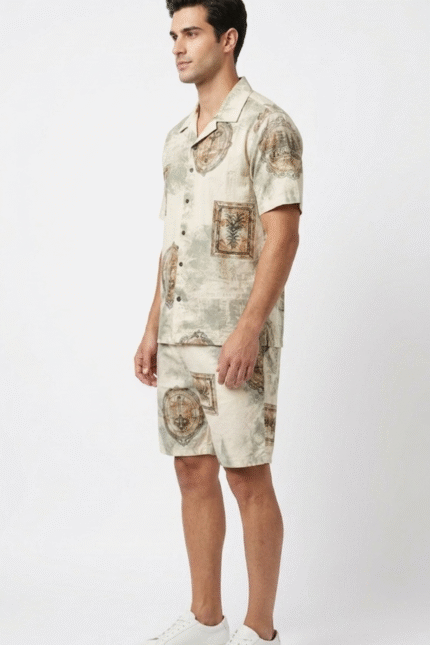 Men’s Printed Co-Ord Set – Half Sleeve Button Down Shirt & Shorts