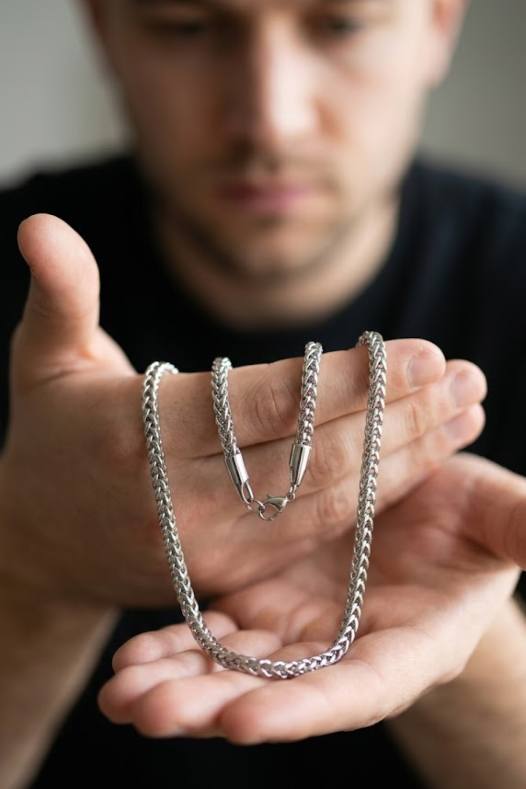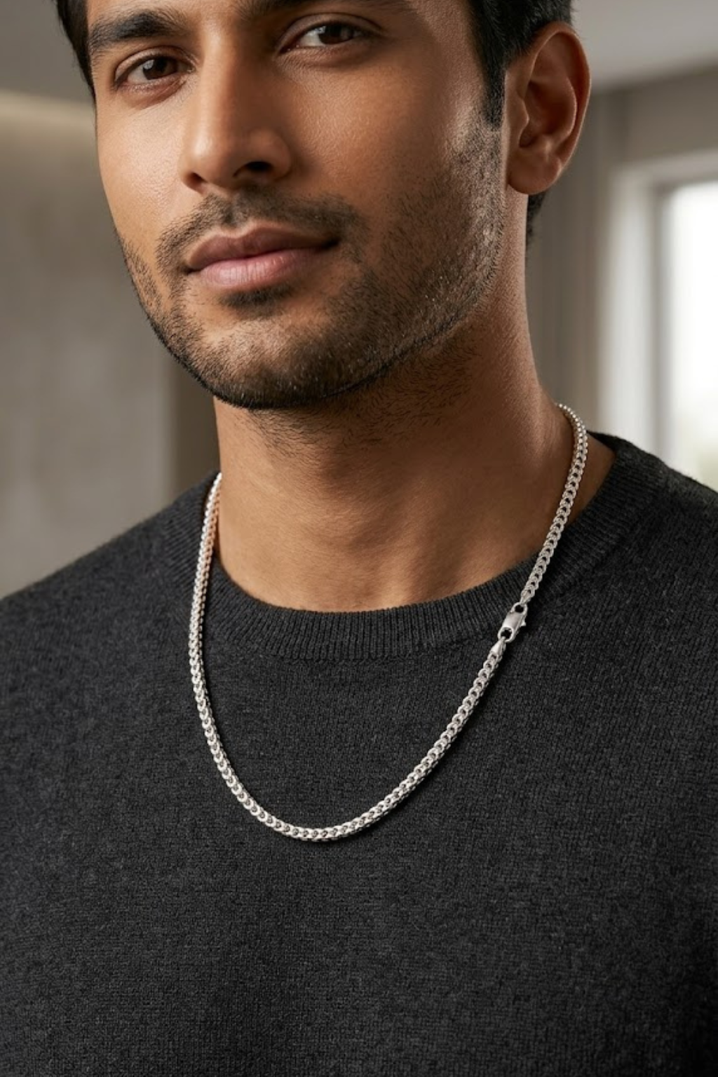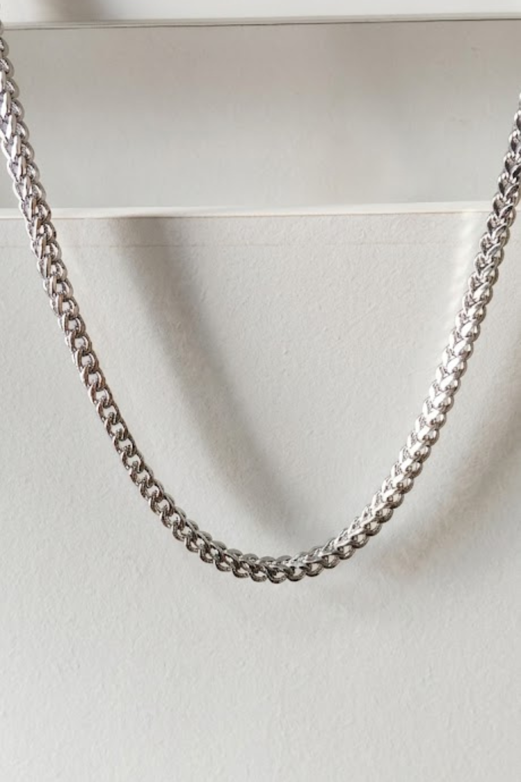 sliver chain necklace, designed to deliver a bold yet timeless look. Crafted from high-quality stainless steel, this chain offers excellent durability, resistance to tarnish, and long-lasting shine, making it perfect for daily wear
