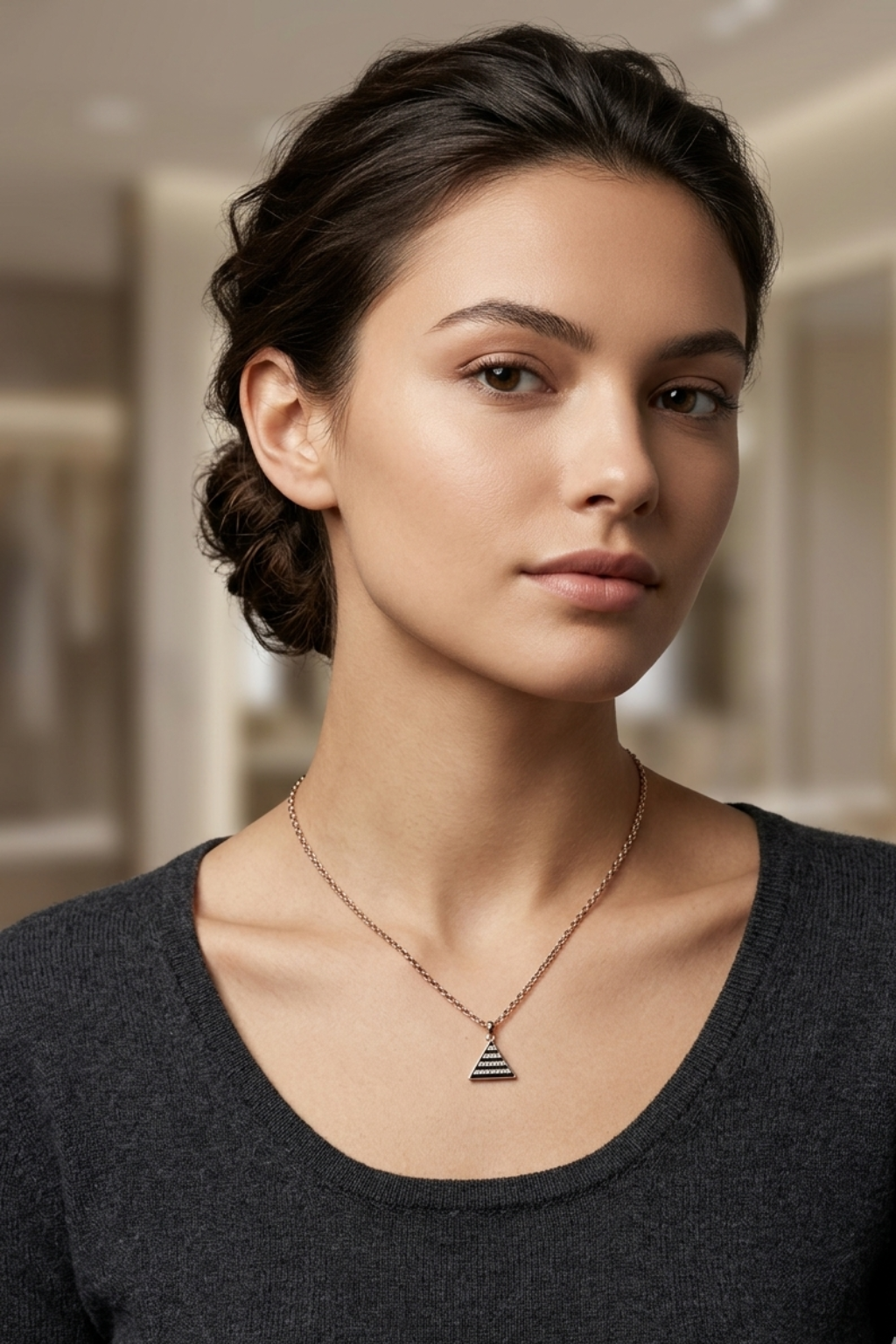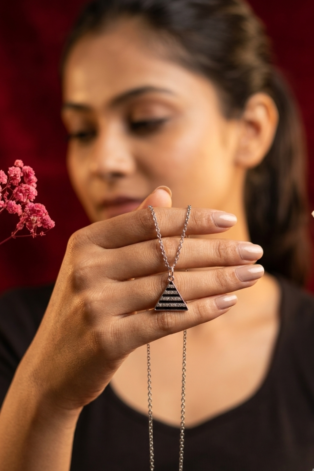 Be the first to review “Minimalist Triangle Pendant Necklace for Women Silver Chain with Black Striped Geometric Charm” Cancel reply