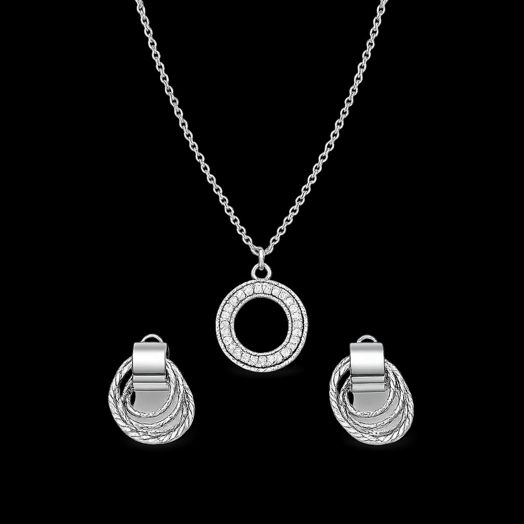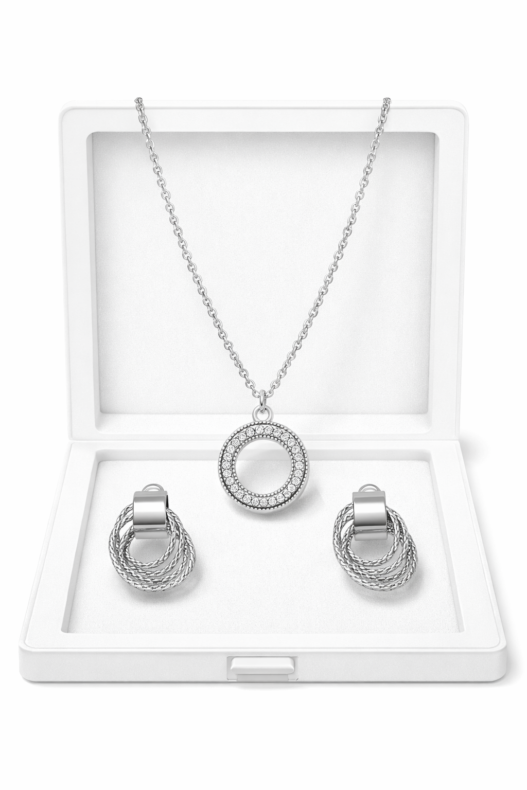 Home Women Jewellery Silver Round Pendant Chain & Sliver Earrings Set