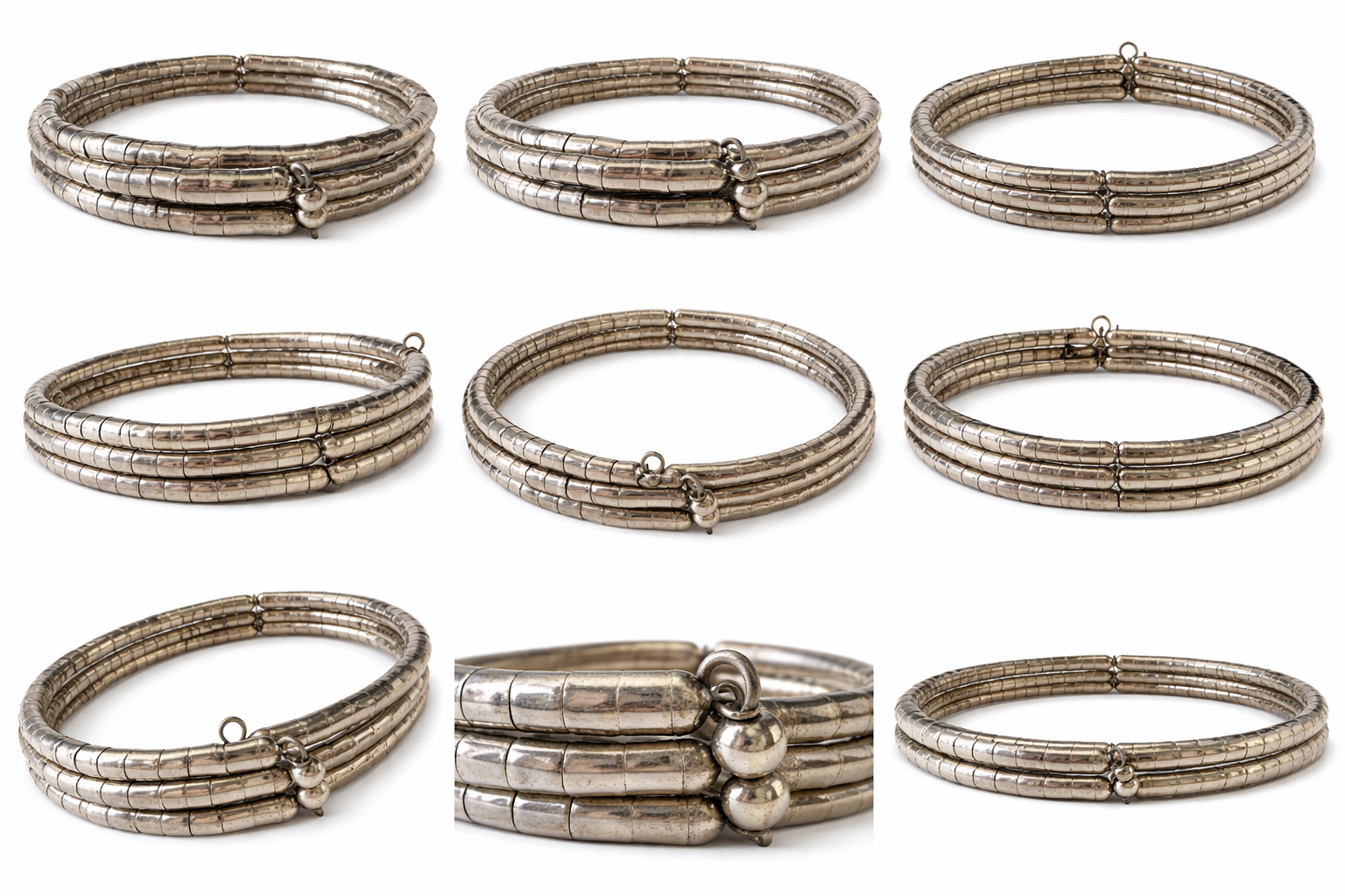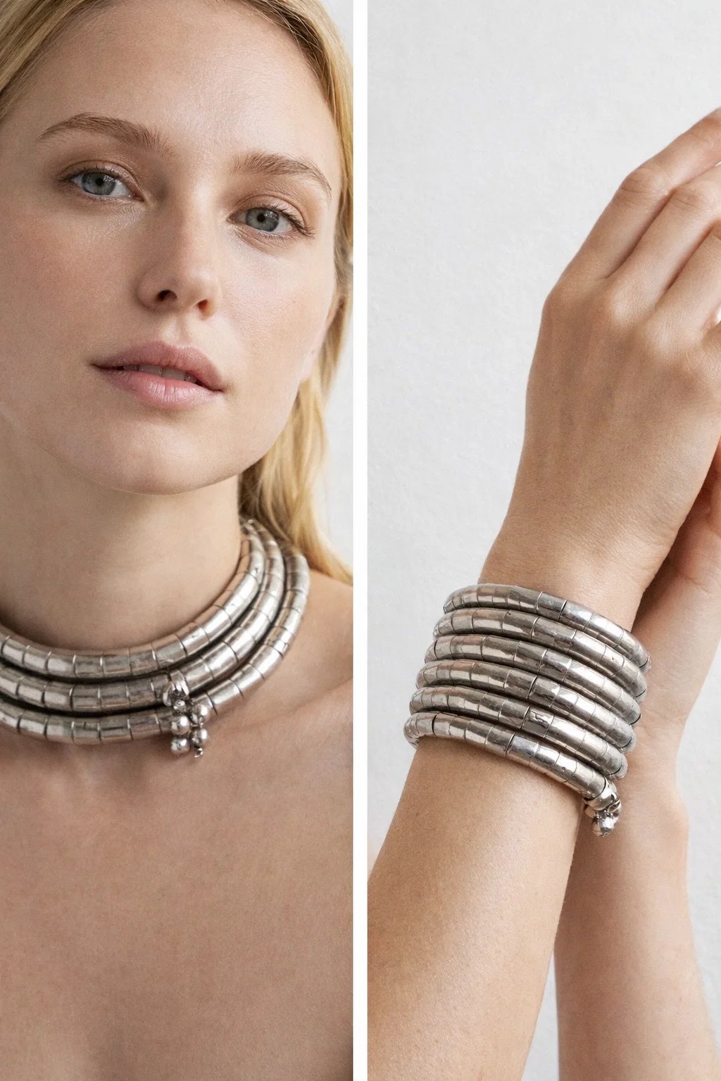 Tribal Coil Silver Choker and Multiple stacked Silver bangles