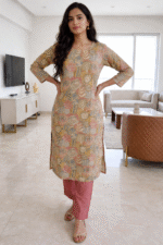 women’s printed kurti, designed to offer both style and comfort. Featuring a beautiful floral print, this straight-fit kurti creates a graceful and modern traditional look. The soft and breathable fabric ensures all-day comfort, making it perfect for daily wear, office, casual outings, or festive occasions.